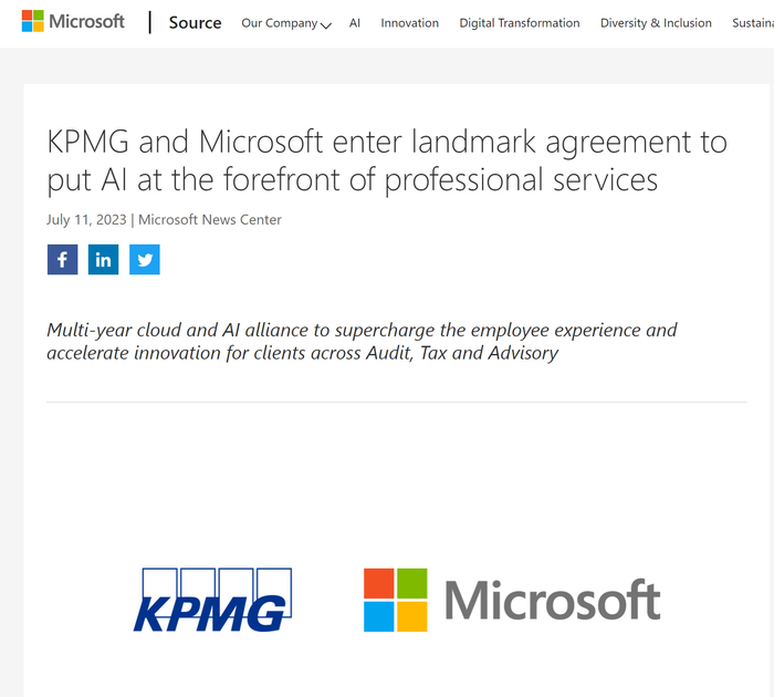 审计也进入AI时代!毕马威与微软达成里程碑式协议 将投资20亿美元