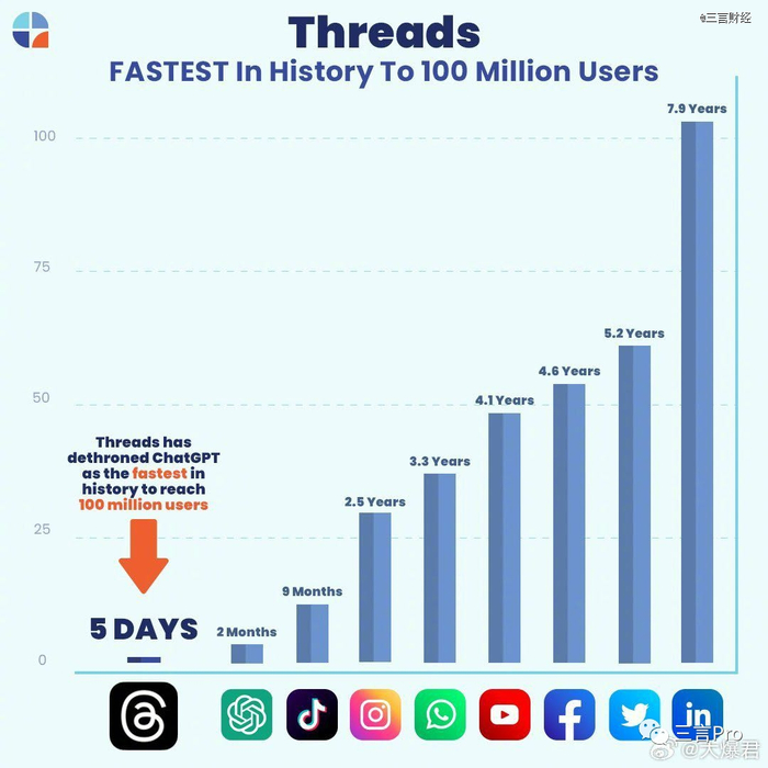 就算Threads将破亿成绩提高到5天,笔者依然觉得ChatGPT更了不起。