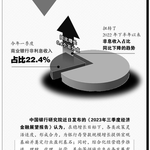 可喜的是,今年一季度商业银行非利息收入占比22.4%,同比增长0.4个百分点,扭转了2022年下半年以来非息收入占比同比下降的趋势。