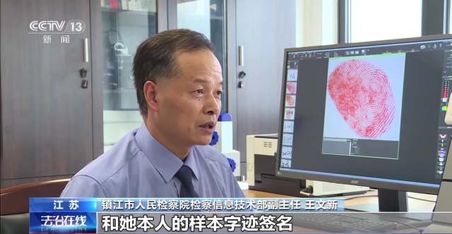 江苏镇江市人民检察院检察信息技术部副主任 王文新:经过笔迹比对检验,杨某上面的签名和她本人样本字迹签名不是同一人书写,也就是说不是杨某本人所写。