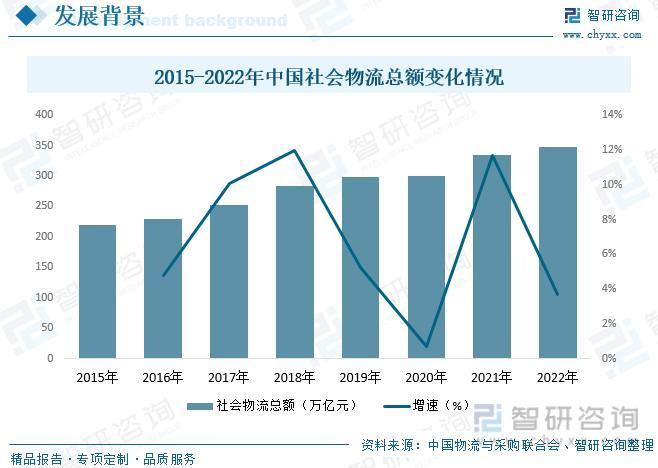 我国是全球最大的物流市场,近年来,随着我国经济的不断发展,居民可支配收入不断提升,居民消费能力也随之增强,促进我国物流市场不断发展。铁路运输作为我国陆上运输的基本运输手段之一,在我国日益壮大的物流市场下,也将迎来广阔发展空间。据资料显示,2022年我国社会物流总额达347.6万亿元,同比增长3.7%。