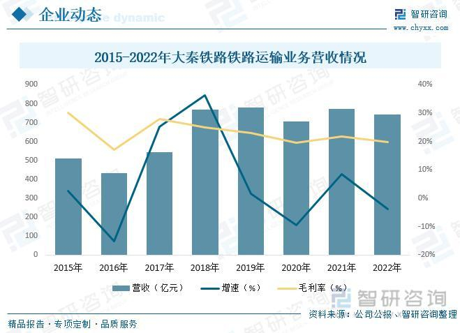 大秦铁路股份有限公司成立于2004年,是中国国家铁路集团有限公司为实际控制人、中国铁路太原局集团有限公司控股,以煤炭等大宗货物运输和旅客运输为主营业务的综合性铁路运输企业公司是以煤炭、焦炭、非金属矿、钢材、金属矿石等货物运输和旅客运输为主营业务的区域性、综合性铁路运输企业和国有控股公司。公司拥有成熟、先进、可靠的铁路煤炭重载运输技术体系。所辖大秦线是具有世界先进水平、年运量最大的现代化专业煤炭运输线路,在国家“西煤东运”“北煤南运”能源运输体系中居于重要战略地位。据资料显示,2022年公司铁路运输业务营收为741.33亿元,同比下降3.81%,毛利率为19.85%。