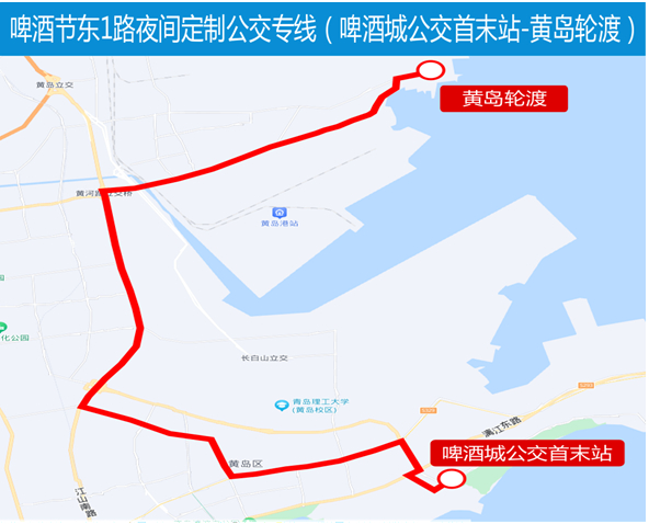 1.东1路夜间定制公交专线(啤酒城公交首末站—黄岛轮渡)
