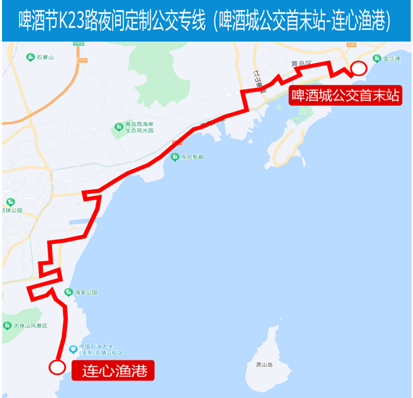 9.K23路夜间定制公交专线(啤酒城公交首末站—连心渔港)