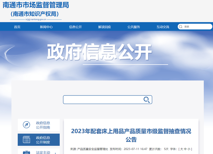 江苏省南通市市场监督管理局公布2023年配套床上用品产品质量市级监督抽查情况