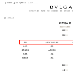 而在此之前,点击“寻找精品店”选项可以查找“所有精品店”,即宝格丽店铺在全球各洲的分布。换言之,宝格丽在官网上更改了店铺分布的显示样式。