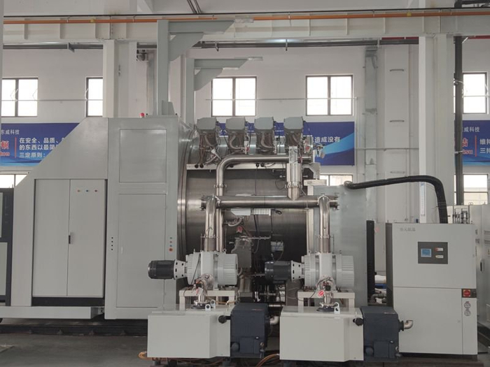其实,早在6年前东威科技便已和下游客户单位一起开发复合集流体电镀设备。时至今日,共进行过两次大的迭代。目前,主流的技术是“磁控溅射+水电镀”两步法,东威科技是国内唯一具备量产复合铜箔水电镀工艺的设备厂商,并已向上布局磁控溅射领域,希望为业内提供一体化易上手的“傻瓜机”。刘建波介绍,2022年底公司成功出货首台真空磁控溅射双面镀铜设备,该设备与后道的水电镀设备工艺密切衔接,形成一体化复合铜箔生产线,有助于客户提升生产效率、产品良率,降低生产成本。