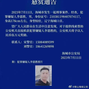 7月11日,辽宁省海城市公安局发布的一则悬赏通告引发网友关注,犯罪嫌疑男子李某胜涉及一起刑事案件。