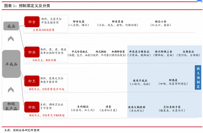 这里的半成品分为两类预制菜产品,分别是即配和即烹。