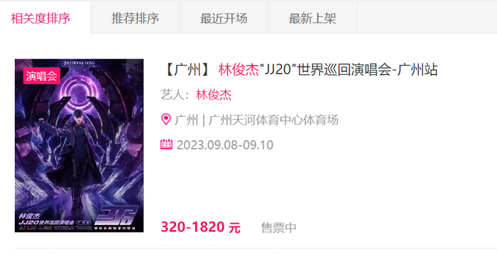 据大麦网,林俊杰广州演唱会的时间为9月8日和10日,票价为320元至1820元。