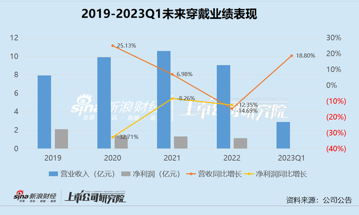 据招股书显示,2019-2022年,未来穿戴实现营业收入分别为7.92亿元、9.91亿元、10.60亿元与9.05亿元,2020-2022年的同比增长率分别为25.13%、6.98%与-14.69%。可以看出,从2021年开始,增长幅度就已明显放缓,2022年随即转为负增长。