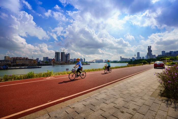 市民在滨江绿道慢跑。来源:佛山宣传 (资料图片)