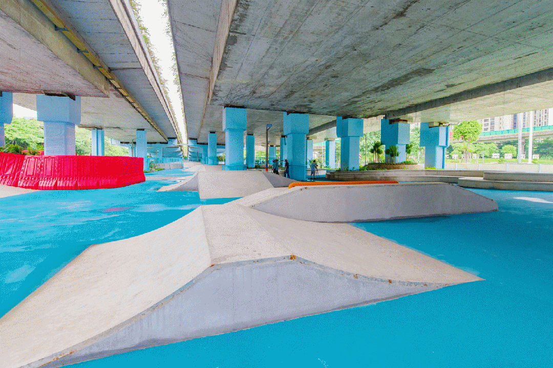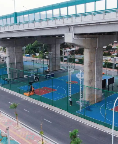 南海山根社区桥下体育公园位于龙翔大桥下,给市民提供一个高质量运动健身环境。