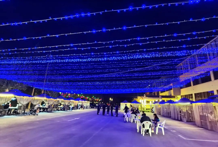 位于天鹅湖国际大酒店东侧,烧烤广场面积约1300㎡,是一个以招牌烧烤、特色涮菜、精美海鲜为一体的综合性餐饮区域,周边同时兼具“文、旅、体、食、娱”等业态,吸引国内外游客游览消费,为参观峡市景区、亲朋聚餐提供优质的氛围体验。