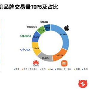 具体看品牌方面,交易量排名与上季度保持一致,但华为的表现抢眼。苹果iPhone仍为二手第一,占比为31.48%,同比下跌3.31%。国产品牌表现良好,小米稳居国产第一,华为、vivo、OPPO(含一加)、荣耀分列其后。