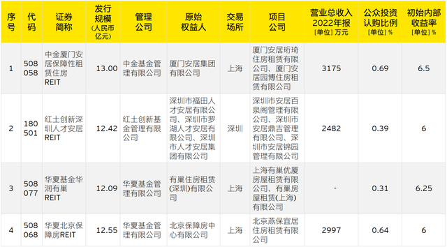 截至2022年底,已有四只保障性租赁住房REIT*成功发行