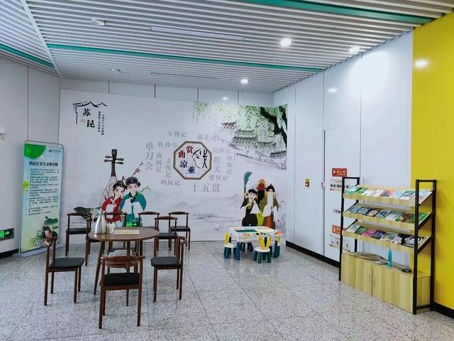与往年不同的是,今年苏州地铁5号线在花墩站、许家桥站、落星桥站、南园北路站、华莲站、星塘街站等6个车站,推出升级版纳凉区,将“吴语”“街巷”“昆曲”等苏州元素融入纳凉区装饰,给市民乘客营造更舒适、温馨的休闲纳凉环境。其中,在华莲站以“昆曲”为主题,纳凉区内播放着昆曲评弹等经典曲目,让市民在清凉的环境中享受全感官体验的江南之美。