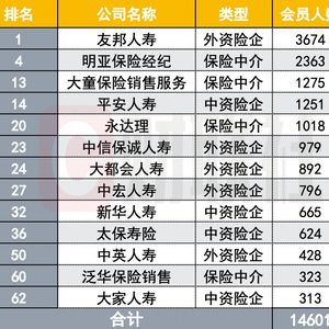 这份榜单揭示的另一重趋势则是保险中介逆势崛起。2023年,4家保险专业中介公司—明亚、永达理、大童、泛华联袂跻身百强,会员人数甚至超过许多传统寿险公司。