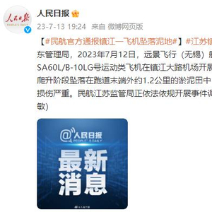 民航官方通报镇江一飞机坠落泥地:正依法依规开展调查工作