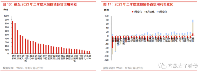 (6)河南:郑州航空港估值偏高且存续量大,当前个券利差水平集中分布在300bp左右,股权上划至省财政、银行资源倾斜等举措带来改善机遇,但就区域重要性等方面而言还是与津城建有差异,债务增速快、短期化等问题可能增大估值波动。此外,新郑投资集团和三门峡投资集团在利差100~150bp区间内各有50亿元左右规模的存续债,作为区域内重要平台可关注。