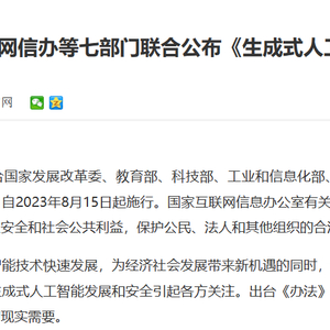 《科创板日报》7月13日讯 (记者 毛明江 黄心怡) 国家网信办联合国家发改委、教育部、科技部等七部门近日公布《生成式人工智能服务管理暂行办法》(以下称《办法》),自8月15日起施行。多位业内人士向《科创板日报》记者表示,《办法》明确生成式AI实施算法的“备案制”,而不是此前预期的审核许可制,总体体现了意在促进人工智能产业发展创新的“呵护式”监管思路。