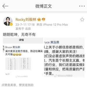 日前,小鹏产品营销总经理黄泓霖和自动驾驶产品高级总监刘毅林对理想汽车的周度销量榜单发出了质疑,认为其数据存在一定的问题。黄泓霖在朋友圈中表示我们没必要虚张声势的晒战报秀肌肉,汽车是个长期主义赢,机会主义死的行业,我们还是踏实做好产品质量和供应,把高质量的产品交到用户手里。
