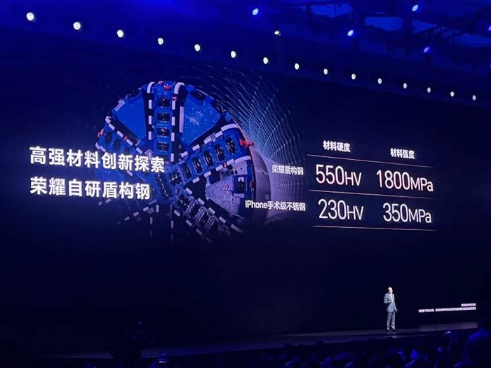 比如此次荣耀Magic V2的铰链使用了盾构钢,其材料硬度和强度,都远超过iPhone的手术级不锈钢。”因为原来铰链硬度偏软,折叠过来之后容易变形,那我们就进行盾构钢的原材料开发;同时用钛金对整个屏幕进行保护,如果说制造过程工艺切割非常难,那就用3D打印一体成型。这些都是在折叠屏手机原来的生产或设计当中,从来无人涉足的一些领域和方向。“赵明说。