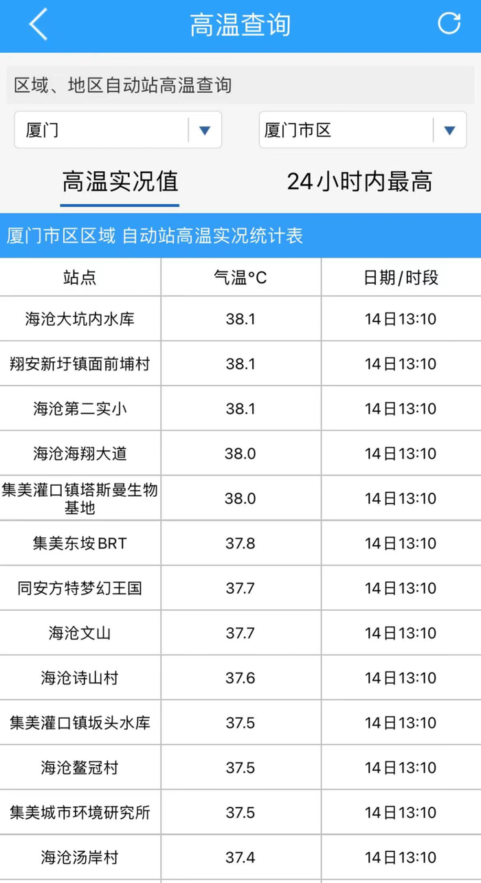 最热的地方位于海沧大坑内水库