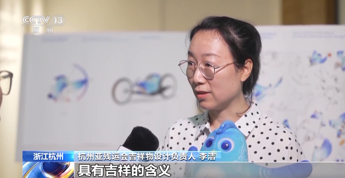 杭州亚残运会吉祥物设计负责人 李洁:它是一个神性之鸟,具有吉祥的含义。我们可以看到它展起的翅膀也就象征着中华五千年的文明腾空而起,上面的卷草纹实际上就是良渚的一个标志纹理。