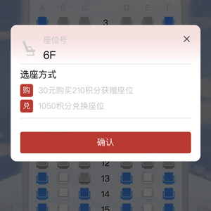 消费者李先生对记者说,他购买的南航机票在APP上提前选座时,选择了“优享”第一排,页面显示“60元购买2000消费积分兑换座位”。