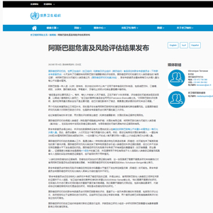 ▲世卫组织官网发布阿斯巴甜风险评估结果。世卫组织官网截图