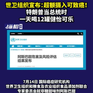 世卫组织宣布:超额摄入可致癌!特朗普当总统时一天喝12罐健怡可乐