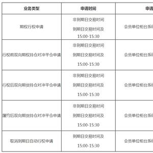 在每个交易日的交易时间以及到期日的15:00-15:30,客户可以提交“行权”、“双向期权持仓对冲平仓”、“行权后双向期货持仓对冲平仓”和“履约后双向期货持仓对冲平仓”申请。