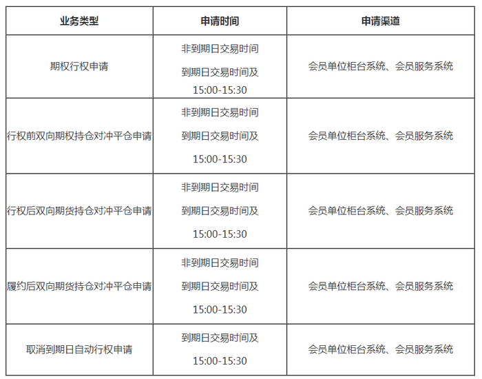 客户办理行权申请、取消行权等业务的时间及渠道见下表:
