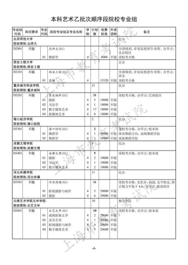 本科艺体类乙批次(含顺序段和平行段)招生计划(含缺额计划)