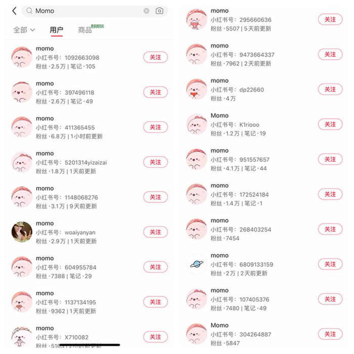 最初,新用户通过微信登录豆瓣、小红书等平台时,momo和粉色小恐龙(微信原创表情包系列IP)就是系统默认的昵称和头像之一。最早一批momo,就是那些懒得取名和换头像的人。