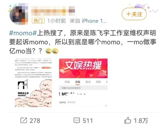 这一告,把momo送上了热搜。有人留言,豆瓣上的momo小组就有8000多名成员,不知道起诉的是哪个。