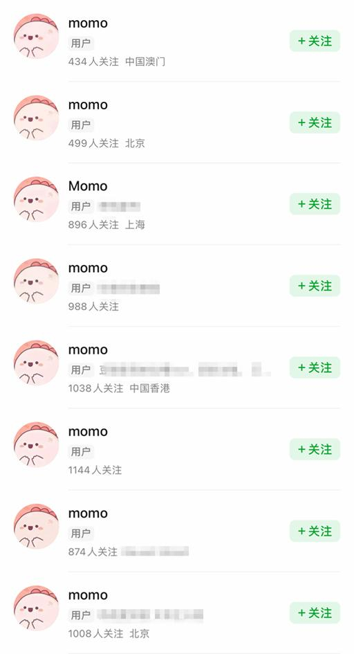 可如果点进个人主页就会很快发现,这些momo根本就不是同一个人。他们来自全国各行各业,有男有女。