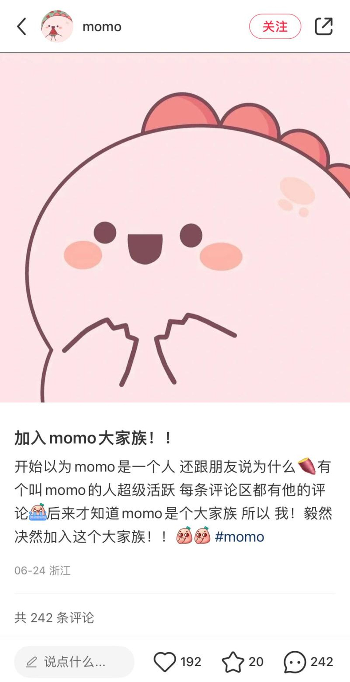 如果你常刷小红书、豆瓣、知乎等,可能已经注意到有个头像是粉色小恐龙、名叫momo的用户异常活跃。几乎所有帖子和问答下,都能找到TA的身影。