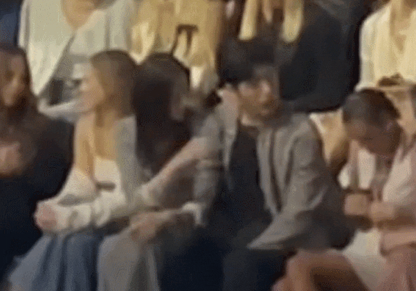 一起穿“情侣装”在香奈儿并排看秀,肢体语言很有情侣氛围感↓