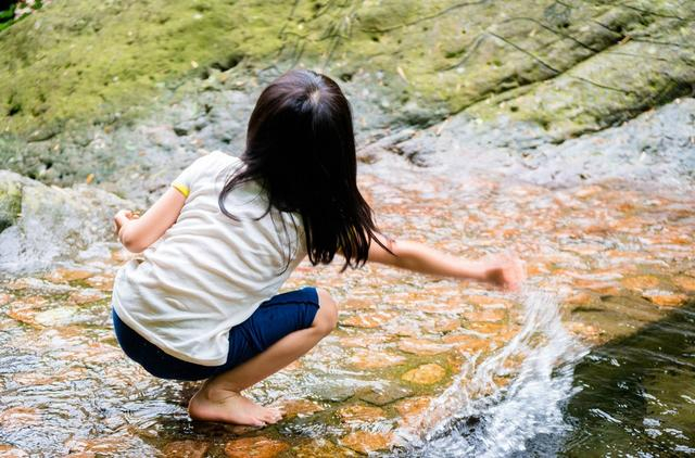 行至“月亮湾”,溪水变得平缓清浅,水下鹅卵石平整,水深平均在脚踝以上,成为一片天然的水上运动玩耍乐园。来一场酣畅淋漓的打水仗或是水上足球,把夏日的炎热都挥洒出去!