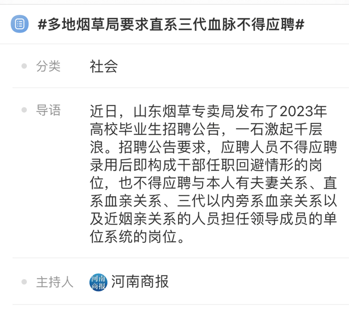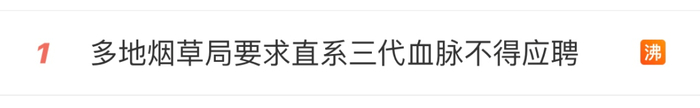 热搜第一!多地烟草局公告:直系三代血脉不得应聘