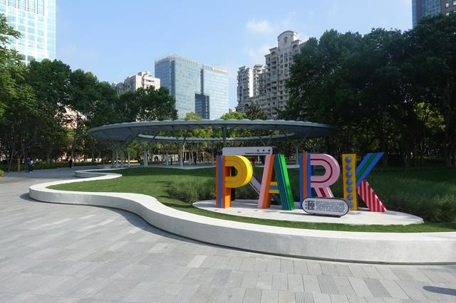 从遵义路、仙霞路转角处走进虹桥公园,映入眼帘的是色彩鲜艳的“PARK”(公园)字样及身后一座白色、简约的圆形回廊。这正是公园此番全新打造的视觉亮点和功能焦点“虹桥源亭”。