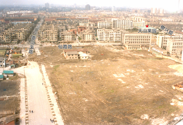 1958年,河浜填埋,被上海市园林局开发出一个果园。这个果园恰巧就在城乡分界线的市区一侧——1981年之前,仙霞路向西折转古北路,再向北折转天山路是一条城乡分界线。仙霞路南、古北路西、天山路南是上海县地界,反之则是长宁区地界。