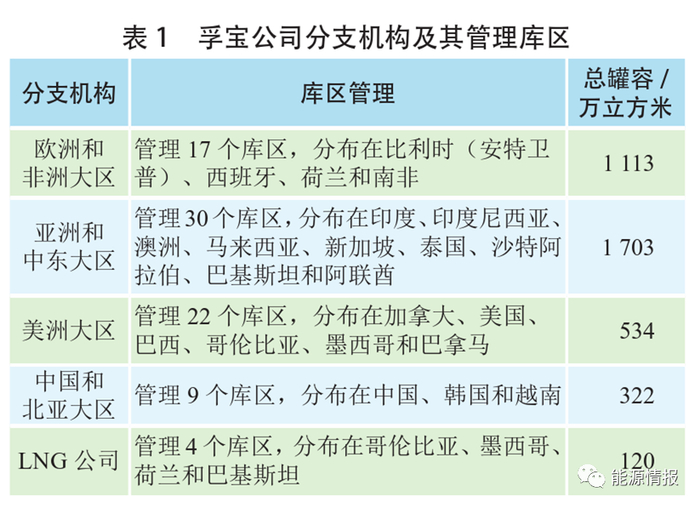 在监事会指导下,由执行董事会和全球职能部门负责仓储资产的投资管理,在全球设有1个液化天然气(LNG)公司和4个大区分支机构,如表1所示。孚宝公司专业从事液体石化产品的码头接卸和仓储,立足第三方仓储业务的定位,按照统一运营和管理标准体系运作,为全球客户提供公平优质服务,客户之间公平竞争,无优先权利。