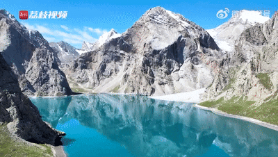 盛夏时节,伊犁哈萨克自治州特克斯县天堂湖,湖水碧蓝澄澈,四周群山矗立,宛如一颗硕大的蓝宝石镶嵌在高原上。截自荔枝新闻视频