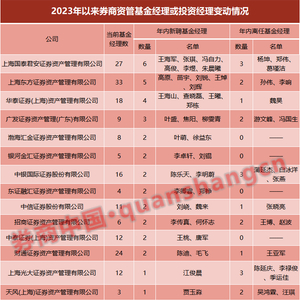 在离任基金经理数量方面,国泰君安资管、中银国际证券、光证资管、方正证券年内离任基金经理或投资经理数量均为3人;东方红资产管理、广发证券资管、招商证券资管、天风证券资管离任基金经理数量均为2人。