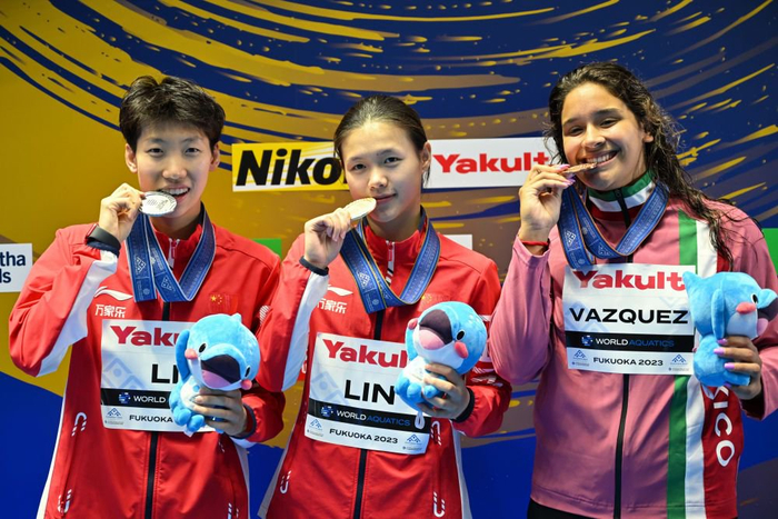 女子1米板比赛中,上届世锦赛混双3米板冠军林珊以318.60分战胜了队友、卫冕冠军李亚杰,获得金牌,李亚杰以306.35分摘银。墨西哥选手获得第三名。