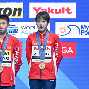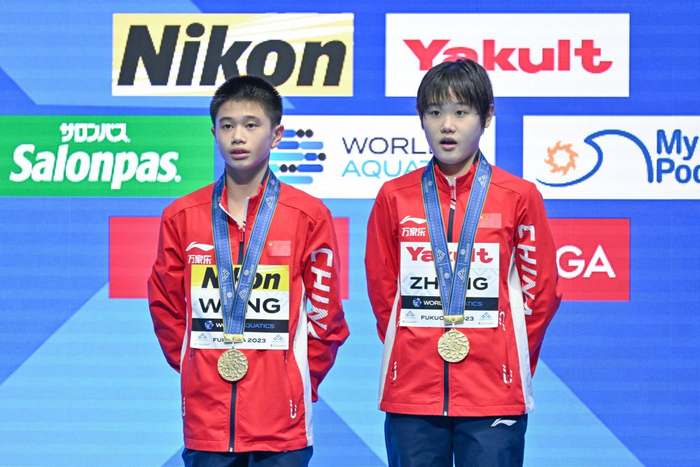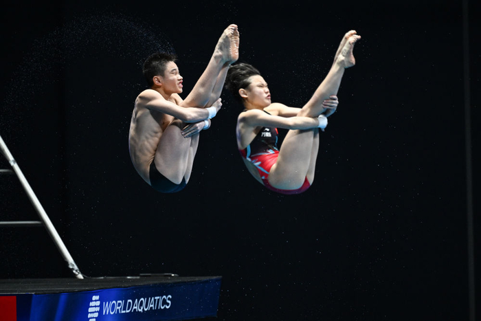 张家齐/王飞龙当日率先开启了跳水队在福冈的夺金之旅,在混合双人10米台决赛中为中国队拿下世锦赛首金。