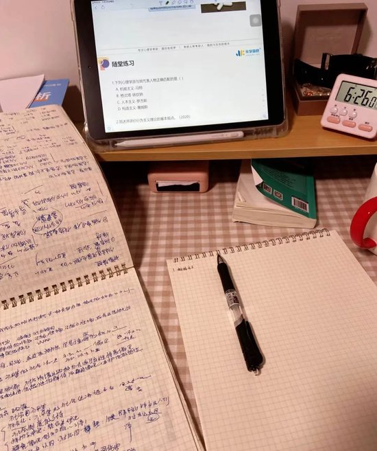 21年10月起,小李开始每天5:30起床洗漱,从6点学到8点再去上班;两个小时的午休时间,她会抽出一个小时来学习;晚上不加班的日子,小李也会在7点多离开公司,去到家附近的书店学个三小时。